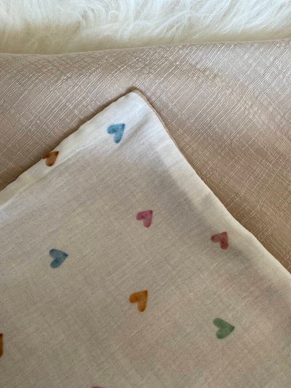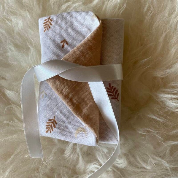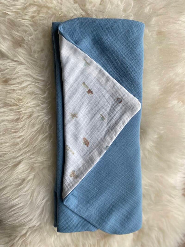 De Vlinderwade is gemaakt van dubbel, zacht katoen – licht, ademend en fijn om aan te raken.